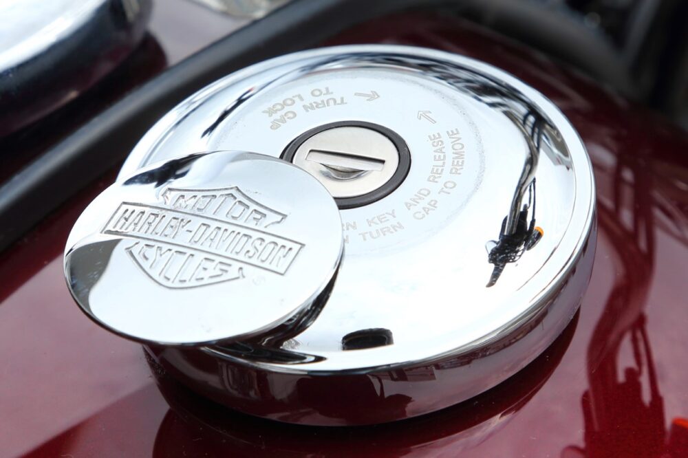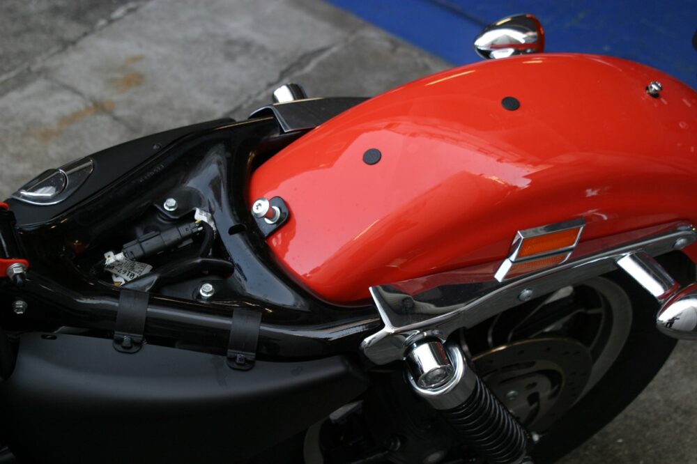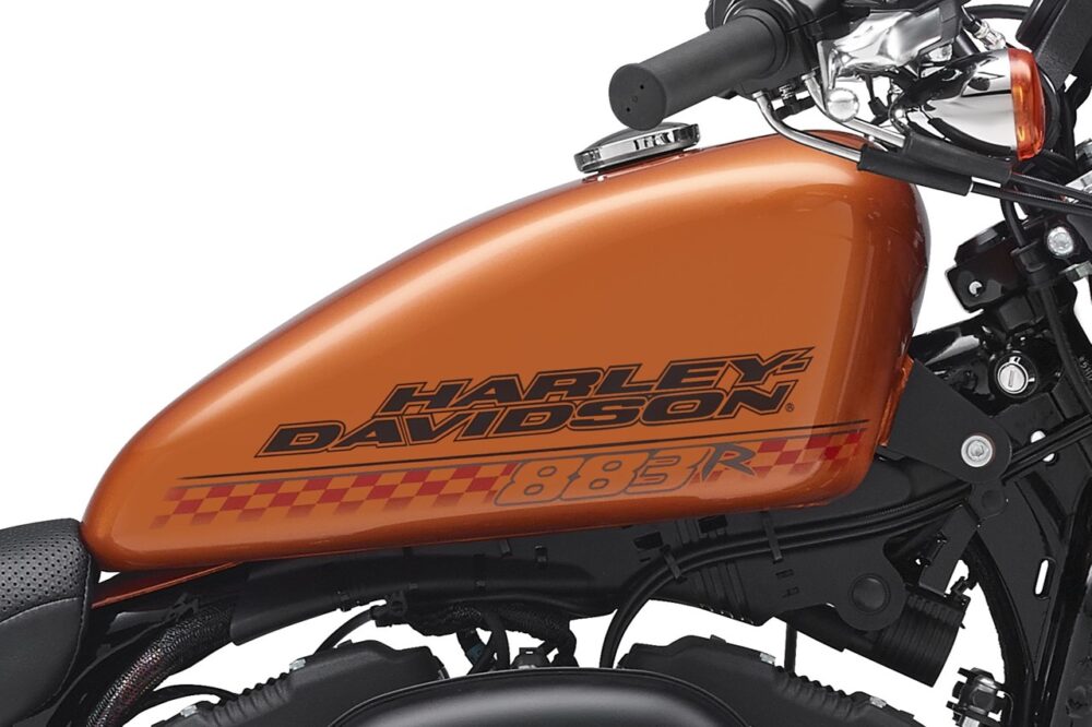 一貫してXR750風のグラフィックを採用してきたスポーツスター883Rだが、ファイナルとなった2015年モデルでデザインを刷新。従来までのデザインを受け継ぎつつ新しいイメージに生まれ変わった。また、ガスキャップにはタンク専用のカギを使って開閉するロック機構が備えられた。