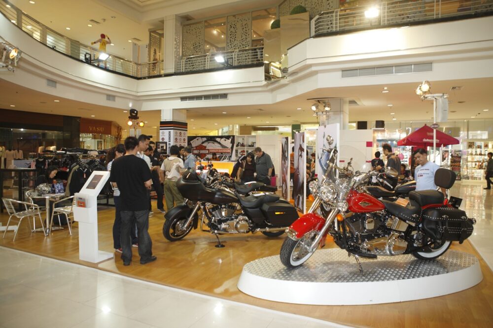 BMFの会場であるセントラルワールドでは、バイクメーカーやカスタムショップ、パーツ、ギアメーカーによる展示。夜には近隣のバイク乗りが広場に集まり、夜中までにぎやかだった。