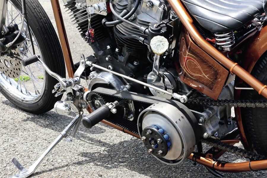 エンジンはS&S製のBキャブなどでライトチューン。ツインカムと比べて使い方が限定されるが、違う楽しさがあるという。