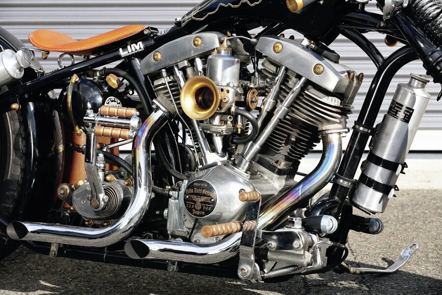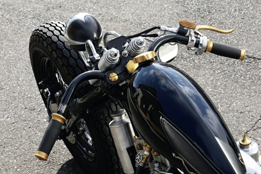 注文したときにわかっていたことだが、曲がらない、止まらない、ポジションは窮屈。そしてとにかく乗りづらい。でもそのカッコよさに代わるものはない。何種類かのエンジンが選べたが、ロッカーカバーの形状からショベルヘッドを選んだ。納車されたままでは飽き足らず、ハンドルやファンネルなどをワンオフで製作し、ピンストやエングレーブを施してもらった。そうするうちにさらに愛着が沸いて、いつしか自分にとって唯一無二のバイクとなった。