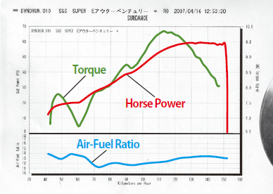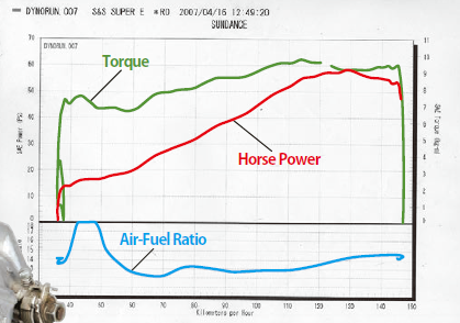 ノーマル排気量では吸気流速が遅く、アイドリングや低速時に不満が残るS&Sのショーティキャブに装着するために開発されたサンダンス製インナーベンチュリーは、シャシダイ上のデータでは最大出力で59.4ps、トルクで9.8kg-mという結果になったのだが、実際の乗り味はというと低中速域の安定性、加速性が明らかに向上。数値以上の吹きあがりのよさを感じることができた。