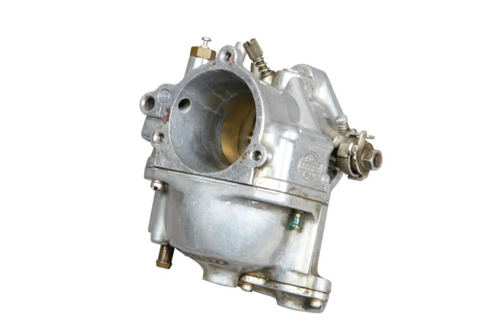 またこのキャブに起こる欠点のひとつに加速ポンプから噴射されたガソリンが霧化されにくいという点もあるのだが、これは47.6㎜という大口径ゆえの流速の低さが原因。しかもベンチュリー内でガソリンと空気がよく混ざる箇所とそうでない箇所があり、それが燃焼効率の低下を招いてしまうのも問題点。こうした点はキャブボディが長いスーパーBや、38㎜と口径の小さいケーヒン・バタフライだとショベルとよい相性となっている結果からも分かるだろう。バキュームの弱いストック排気量のショベルでは、スーパーEの構造だと、本来の性能を発揮できないのは明白である。あくまでも大排気量車向けに開発されたキャブレターということを認識した方が無難だ。