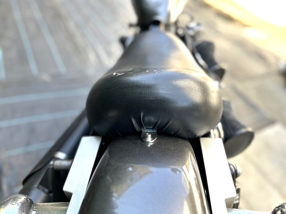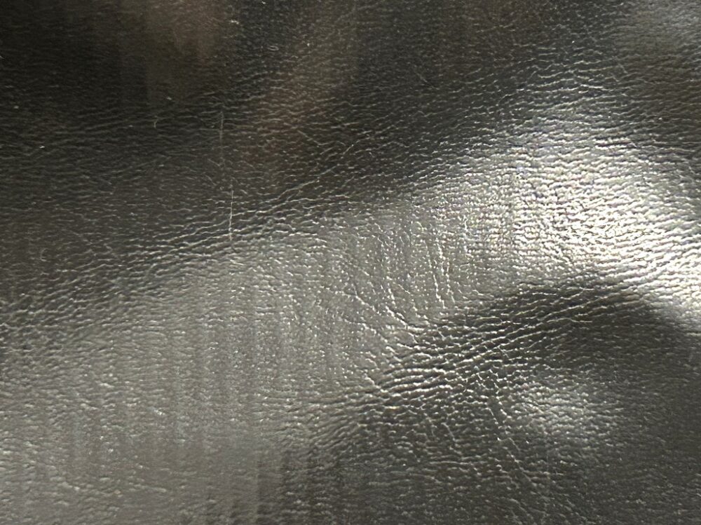 黒いレザーで張り替えたいのだが、「白って200色あんねん」というアンミカの名言が頭をよぎるほど丸直の黒も充実。一応純正レザー(左写真・上)を参考に2種類に絞り込んだが、最終的には丸直さんに判断いただき、「セミアン(左写真・下)」というレザーで張り替えてもらった。