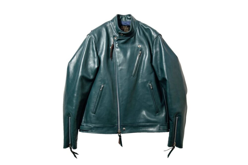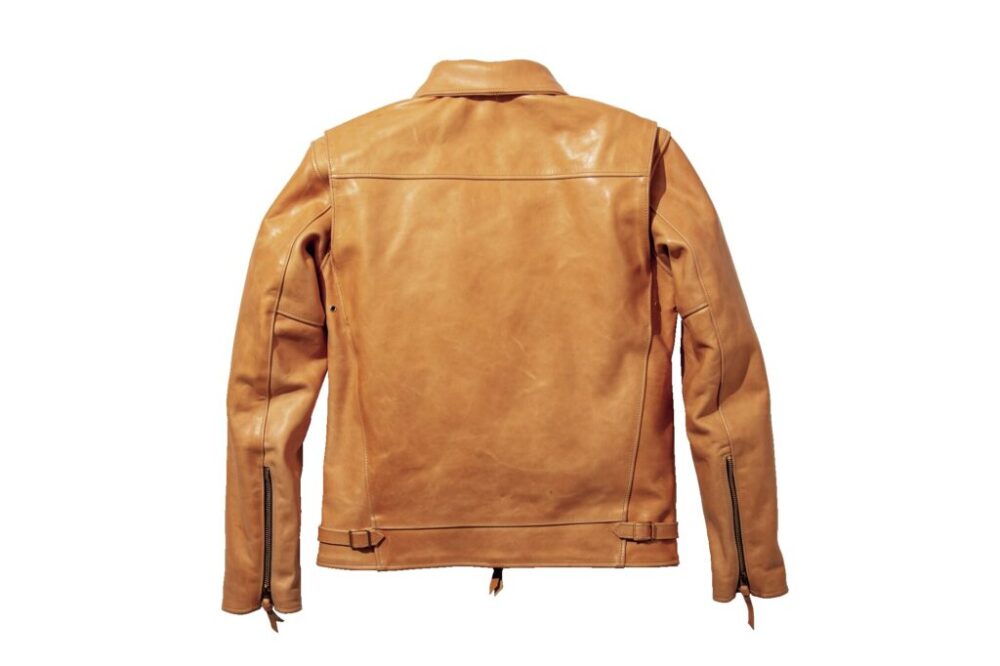 ポーランド産の渋鞣しホースハイドを使用するスタンドカラーのダブルライダースは、ややタイトなシルエットでありながら、腕が動かしやすいパターンを採用している。バイクライドに最適。19万8000円
