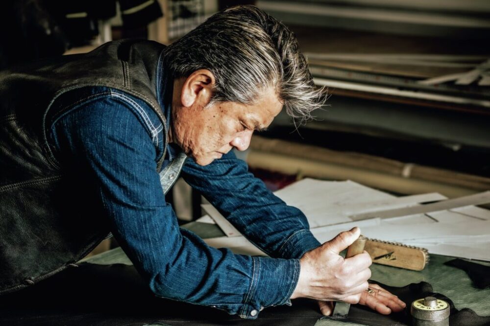「着込むほどに艶が出る革にしたかったので、渋鞣しでほどよい張り感をもたせています。また艶感を強調したかったので革の芯まで黒く染めていますが、今後は色モノの鹿革にも挑戦したいですね」と宮坂さん。進化を続けるフラットヘッドの鹿革は、今後も注視しておくべき存在だ。