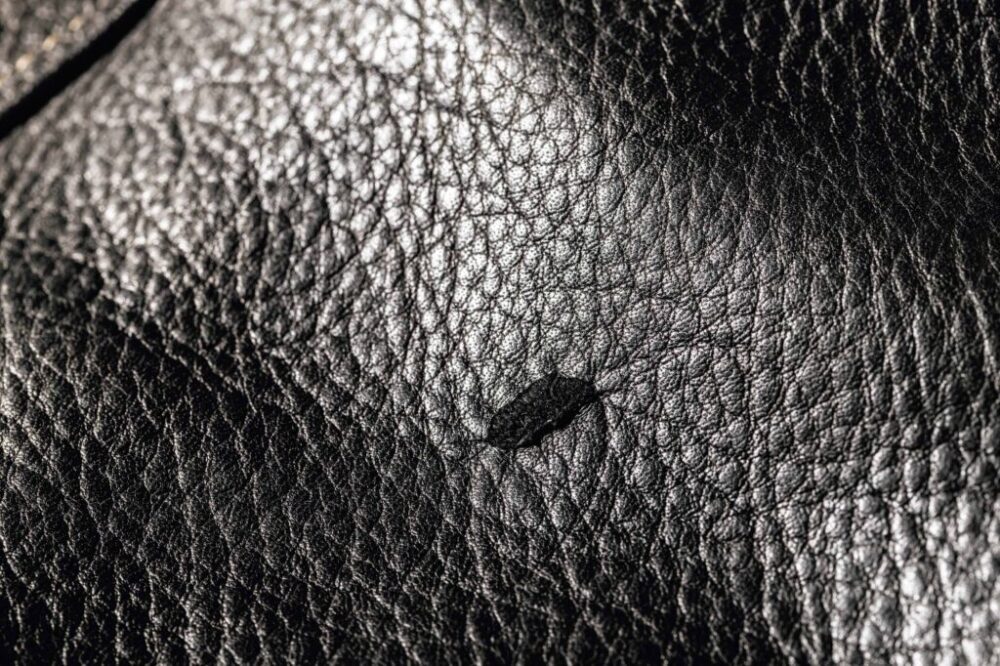 キズが多い革として有名なディアスキン。天然素材である証しともいえるが、製品に仕立てるときは、なるべく目立たない箇所にキズがくるようにレイアウトしているという。