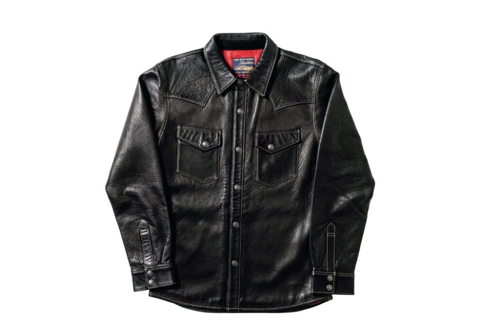 フラットヘッドの名作アイテムのひとつである鹿革のウエスタンシャツ。創業初期から作り続け、少しずつ改良を重ねてきたロングセラー。革は1.3㎜厚の鹿革で、一枚の革で仕立てたソデや後ろ身ごろなど、贅沢に革を使ってスムースな着心地を追求。やや短めの裾丈や、小ぶりのエリなど使いやすい仕様も盛り沢山。29万7000円〜