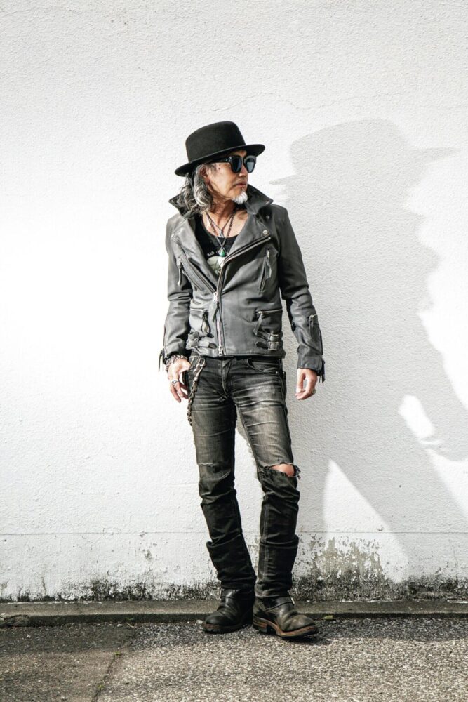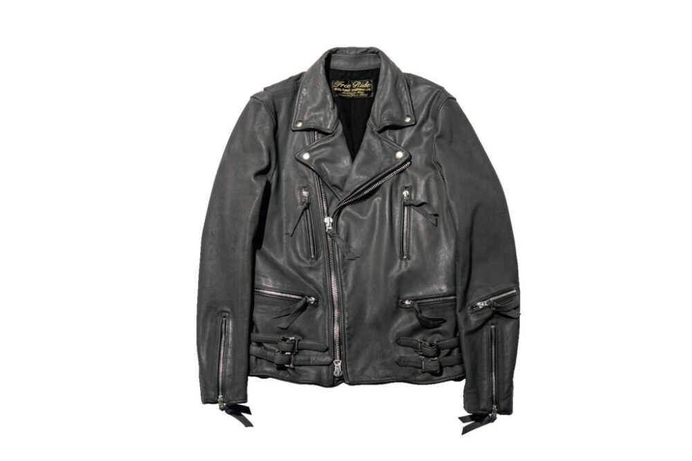サイドにバックルを配したUKモーターサイクルジャケットのスタイルに、米軍のフライトジャケットにも使われるゴートスキンを落とし込んだ。ゴートスキンは水にも強く、柔らかくてタフなため、ライダースにも最適な革なのだ。11万8800円