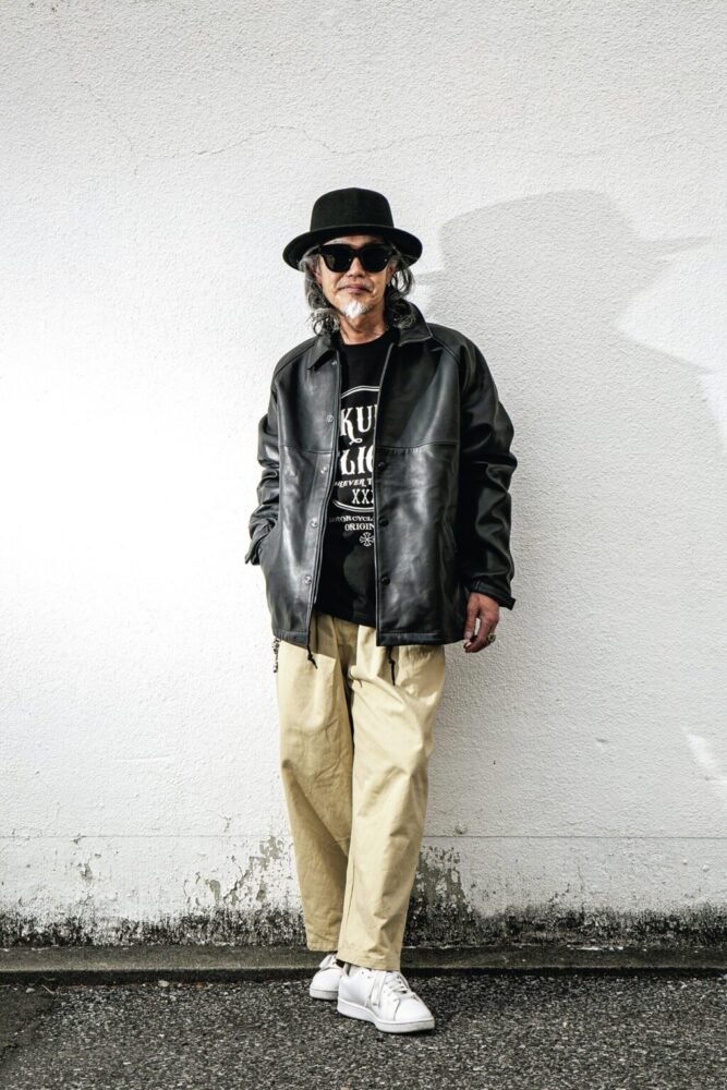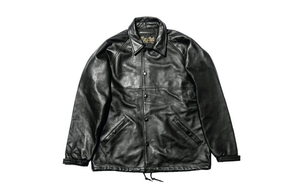 西海岸のハーレー乗りがこぞって着用するコーチジャケットを光沢感あるレザーで再構築。あえてオーバーサイズに仕上げることで、よりこなれた印象に。インナーを着込めば、秋冬のアウターとしても活躍し、シーズンレスで活躍。5万8080円