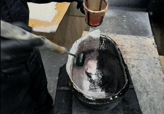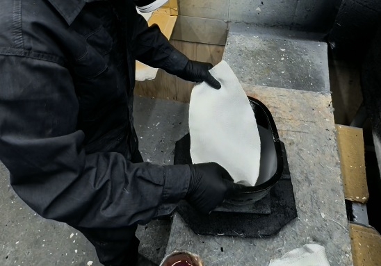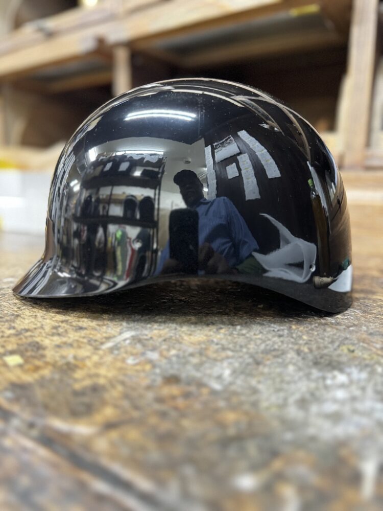 HWYコラボヘルメットの型。ファイバーを塗り込んでいく前にゲルコートを塗っておく。ちなみにこちらはブラック。