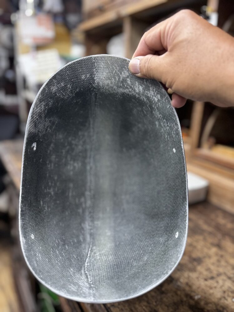 HWYモデルで採用している帽体はFRPシェル。短いツバが付き、簡素化したストラップが特徴のモデルだ。こちらのモデルは工場で大量生産しているものではなく、手練れの職人がグラスファイバーを手貼りし、一つひとつハンドメイドしているモデルとなる。本来は門外不出だが、このヘルメットの製造過程を少しだけ公開する。