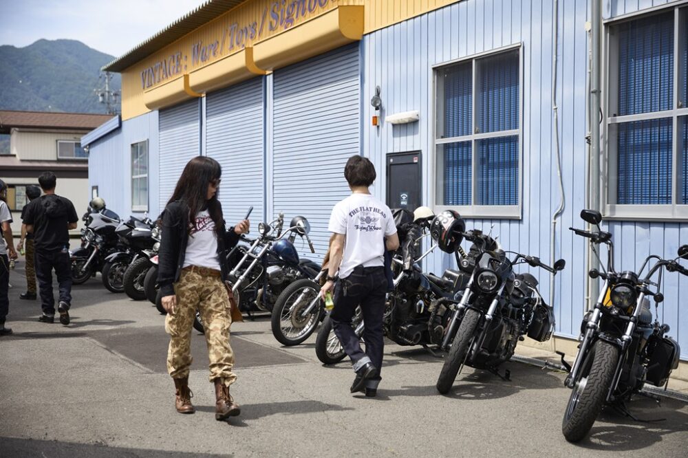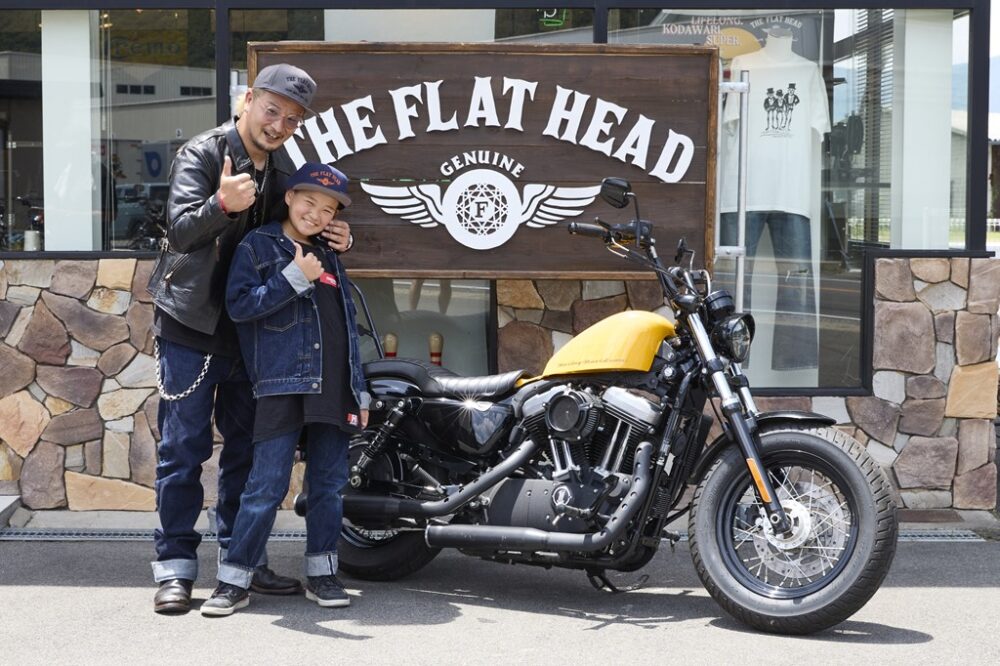 フラットヘッドのスタッフ・坂口さんは、愛娘の陽波ちゃんと一緒に参加。黄色いタンクを引き立てるため、クロムパーツをブラックに換装。また、コブラシートとシッシ―バーは「娘とツーリングがしたくて」と装着したという愛情装備。父娘そろってフラットヘッドのアイテムを身にまとった、リンク感ある親子コーデも印象的だった。