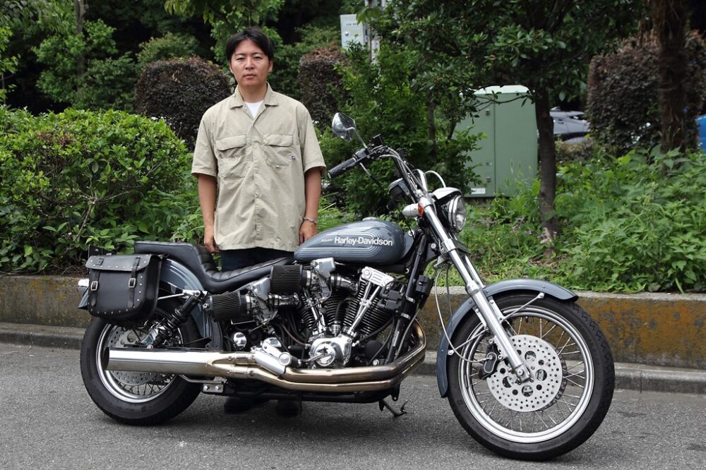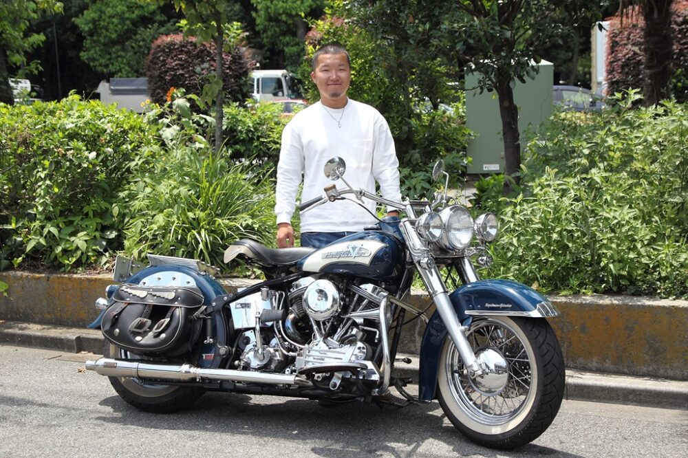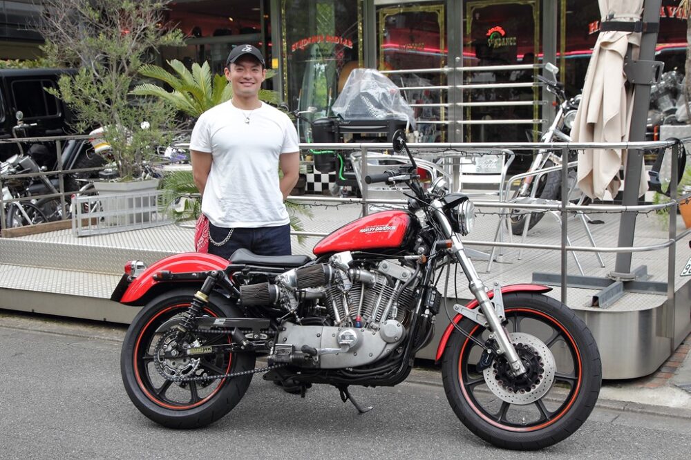2012年に、あの所ジョージさんが渋谷のヒカリエで開催した「自動車ショウ」で目にして以来、ひと目ぼれしたマシンを12年越しに縁あって手にすることとなった相楽輝さんは、その名字からもおわかりの通り上の誠さんのご実弟。もともと好きだった車両だが現在はハンドルやシート、リアサスなどを自分なりにモデファイし、カスタムを楽しんでいるという。以前に乗っていたスポーツスターと比べて2030㏄のスーパーXR-TCは、すべてが強烈とのことで「とにかく走るのが楽しい」と語る。