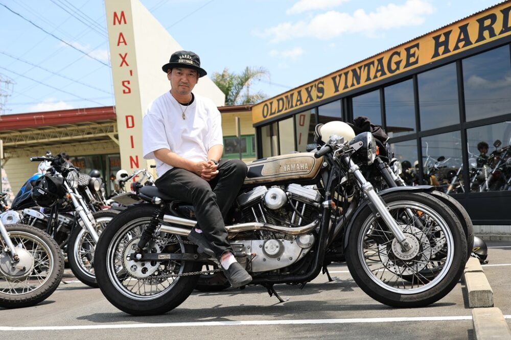 最初、スポーツスターは好みじゃなかったという矢野さん。「安かったので勢いで買っちゃった(笑)」とか。そこでカフェレーサーにカスタムすることに決定! ヤマハのRD50用タンクを流用し、マフラーをワンオフ製作。友人から譲ってもらったセパハンを装着し、オリジナリティあふれる一台を完成させた。