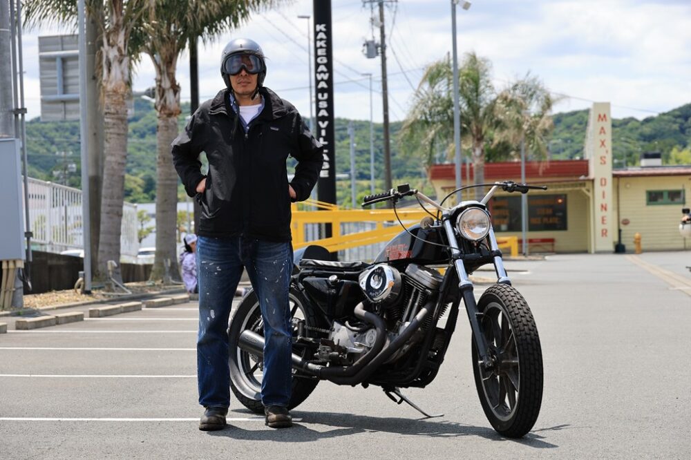 「ずっと憧れてたし、周りが乗り出したからなんとなく……」とバイクとの馴れ初めを語る武内さん。その場のノリでいまの愛車を購入。現在ツーリングやキャンプを楽しんでいる。「フォークとタンク、マフラーとか、全体のバランスがよくて気に入ってます。速くて乗りやすいのがスポーツスターの魅力ですね!」