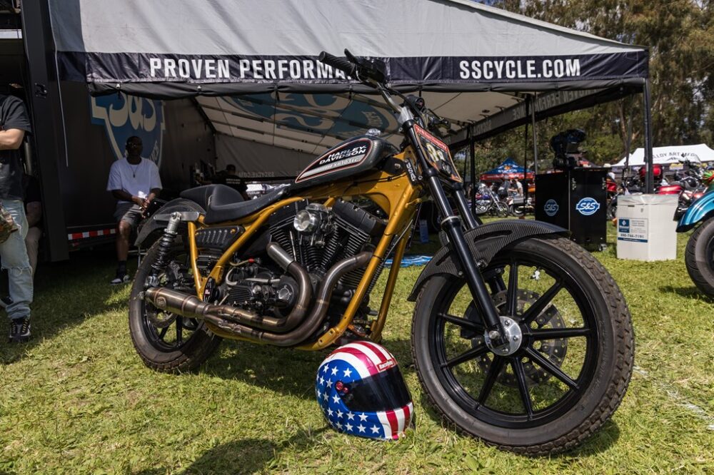 土曜日に行われるのがクラブスタイルの老舗「サンディエゴカスタムズ」主催によるFXRショー。各地から集ったさまざまなカスタムFXRがずらりと並ぶ光景は実に圧巻だった。
