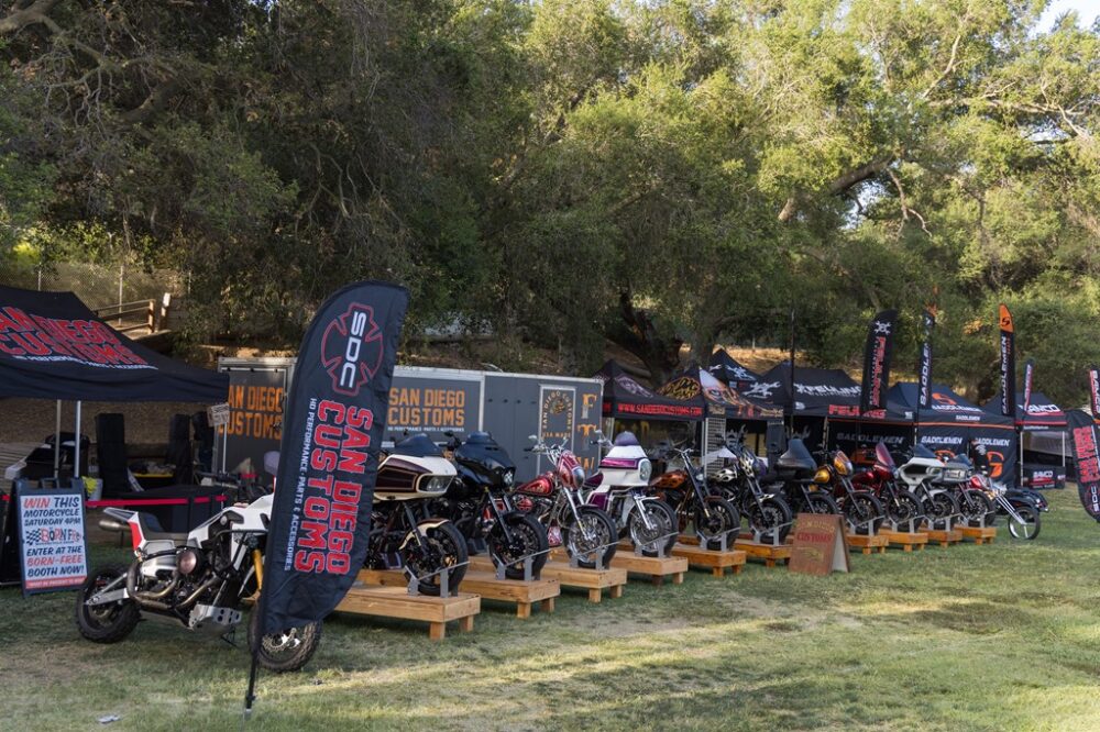 「サンディエゴカスタムズ」のブースでは、同店が製作したFXR、ダイナ、バガーなどのクルーザーを展示。さすがはこのシーンを牽引してきた老舗だけあって、どのマシンも隙のない仕上がり。M8ソフテイルをベースにしたアドベンチャーバイク(!)も注目を集めていた。