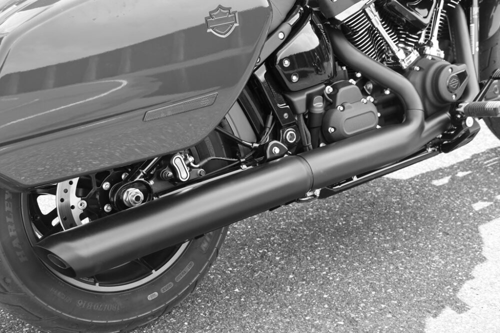 24年モデルまでの2in2から2in1にリニューアルしたエキゾースト。ストレートなデザインで迫力がある。レイアウト上の問題もあるのだろうが、リアバンクのヘッダーがフロント側にカーブするショベルFXS風のスタイルだったらよかったのにとローライダーのファンとしては思ってしまう。