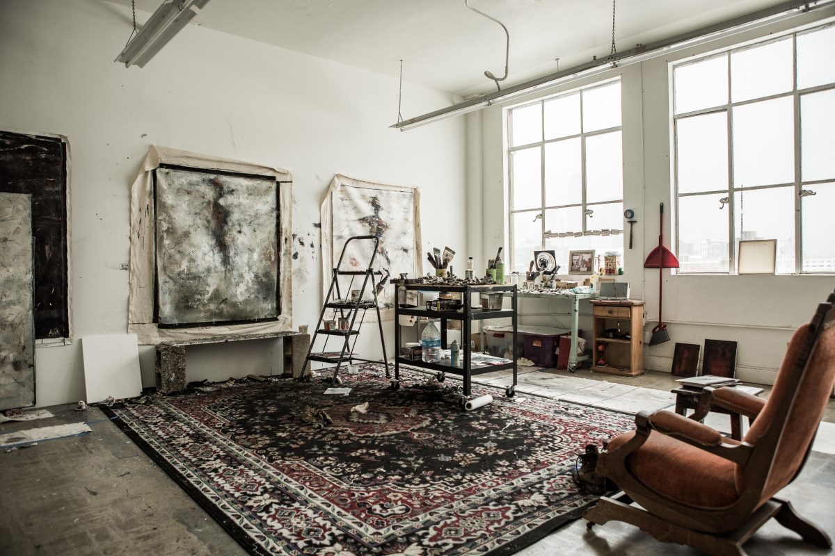 ロサンゼルスのダウンタウンにある、Bendix Buildingというビルの最上階。そこにアトリエを持つ画家Mark Acitelli氏。このビルは1929年に、Florence Caslerによって建てられ、建築家は、Chateau Marmountをデザインしたことで知られるWilliam Douglas Lee。もともとBendix Aviation Corporationのビルだったという、なかなか由緒ある場所にあります。