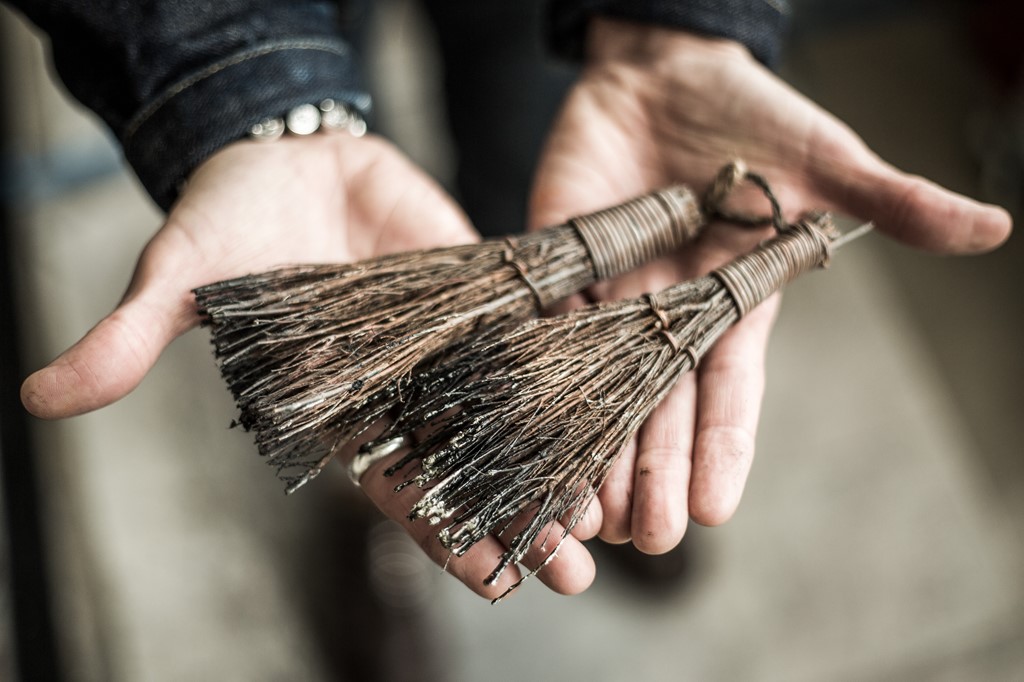 これは娘さんのハロウィン用に買った魔女の箒。これも今では立派な制作ツールに。実際すごくコントロールしにくく描きにくいが、