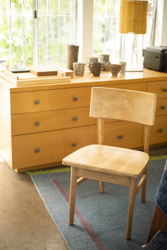 無垢材のよさがそのまま肌ざわりから感じられる椅子。ハンドメイド感がまた、シンプルなインテリアの中にあって、主張しすぎずいい感じです。
