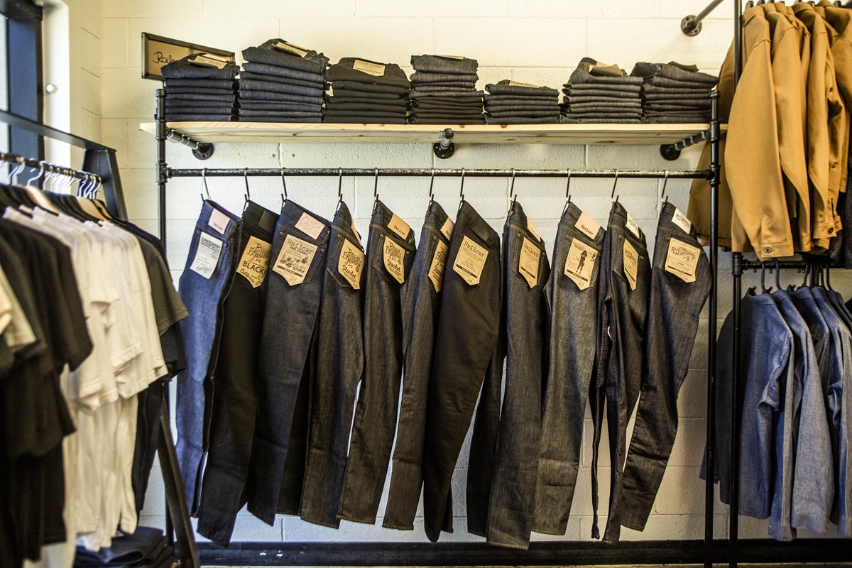 ずらりと並ぶデニムの数々。ジャケットやTシャツなどアイテムは幅広く展開しています。
