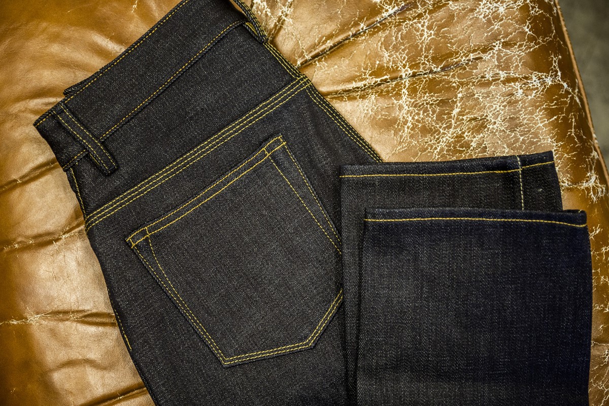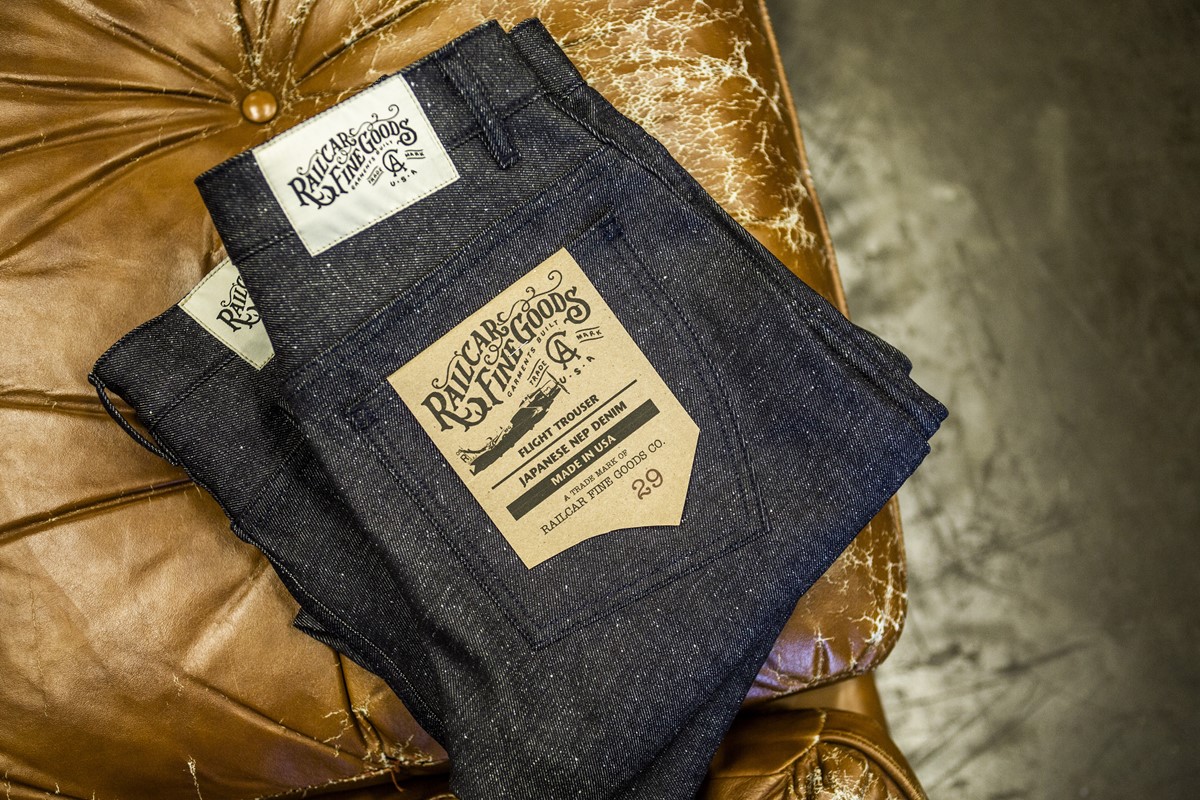 日本のKuroki nep denimを使っている「FLIGHT TROUSERS DENIM」。折伏せ縫いで、耐久性を強化している。