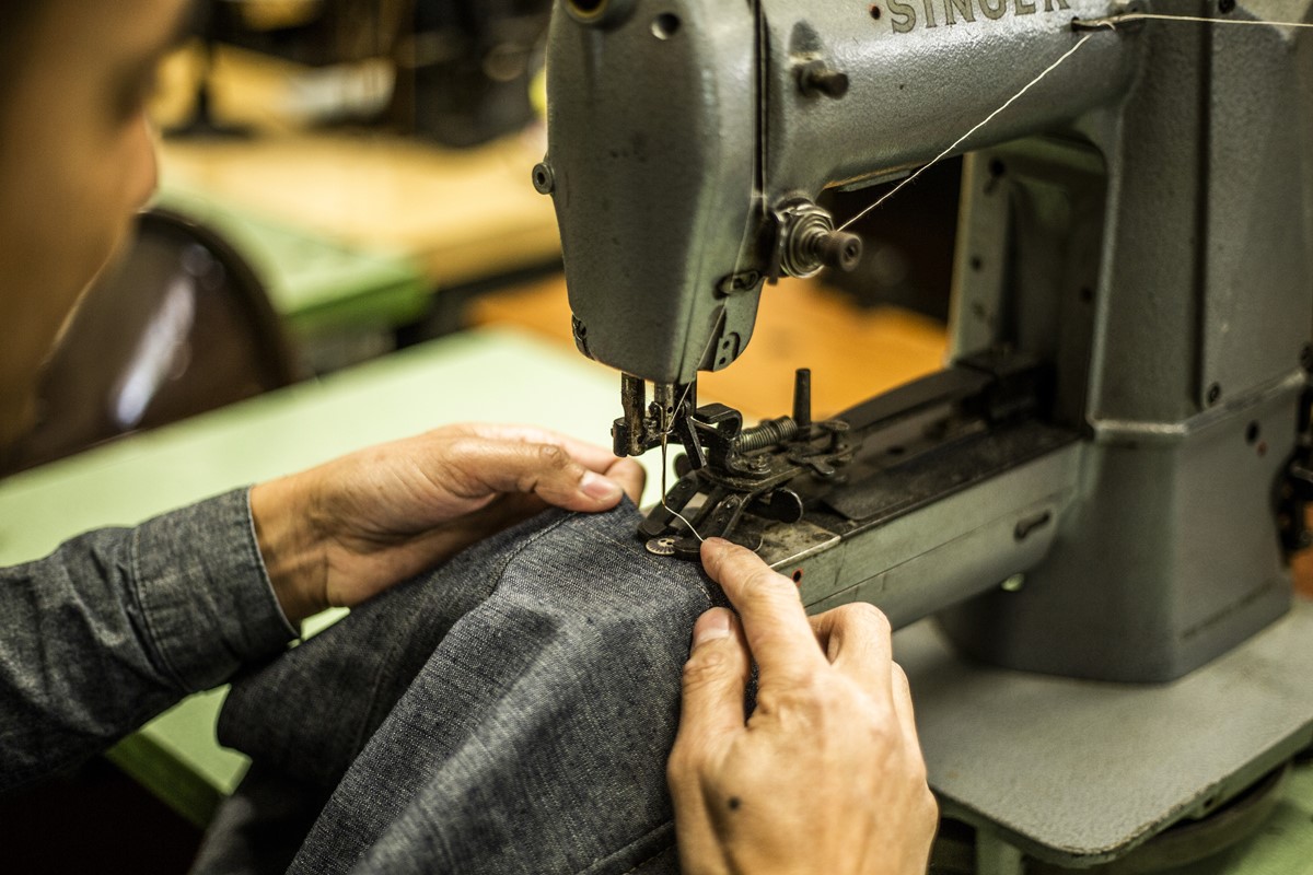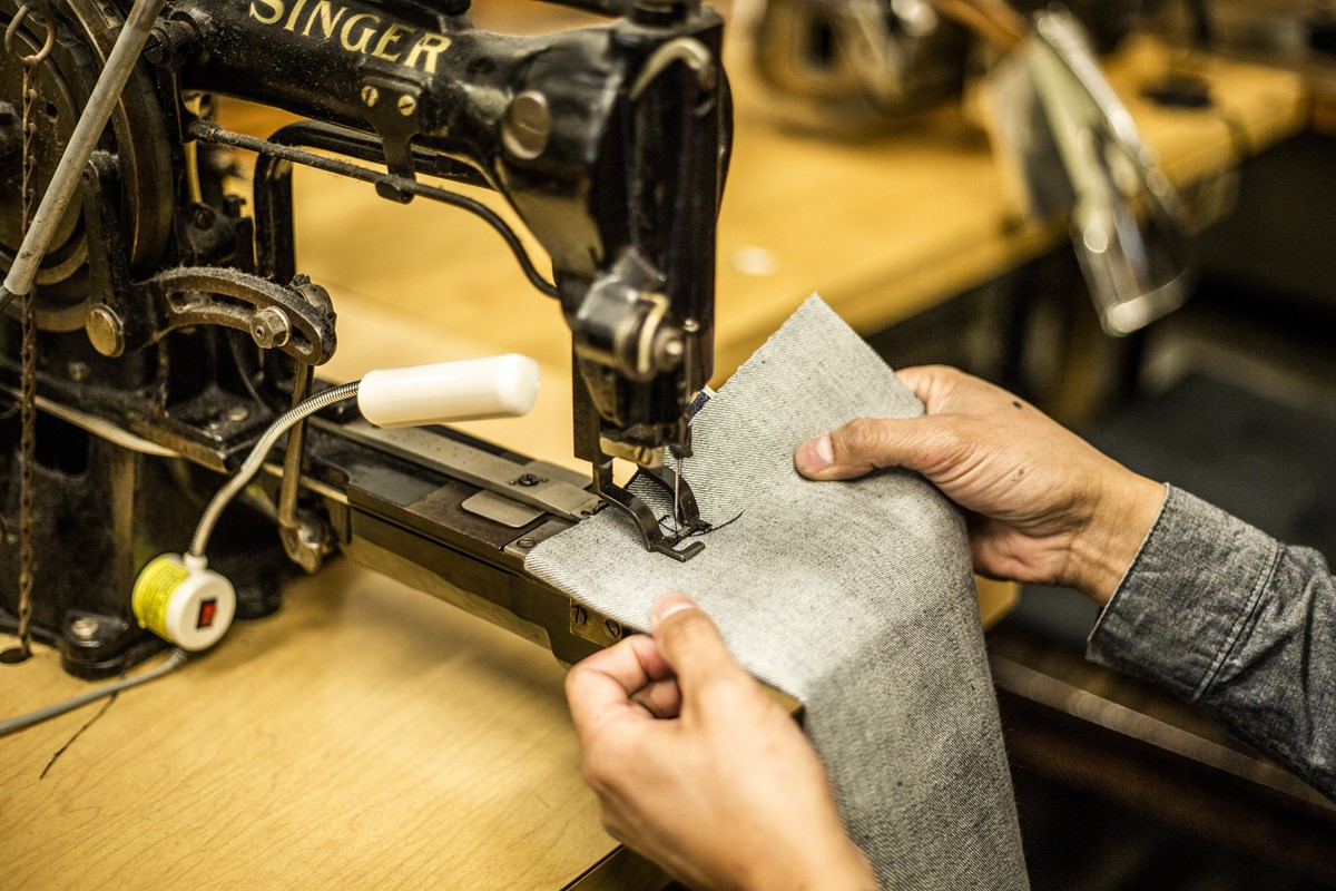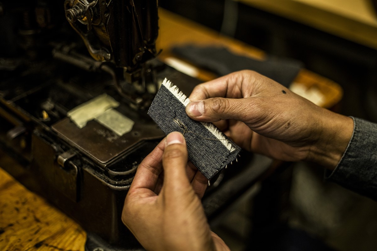 デニムの外側を縫うのに使う、太くて丈夫な糸でチェーンスティッチをするミシン。デニム生地そのものの丈夫さを更に強化できるのが特徴。