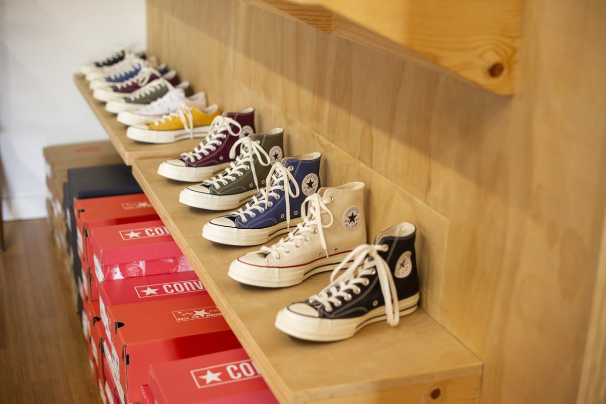 RED WINGや、CONVERSE, VANSなど豊富に日本でも人気のブランドが豊富に揃う靴。カラバリの見せ方も、見やすいのもいいですね。