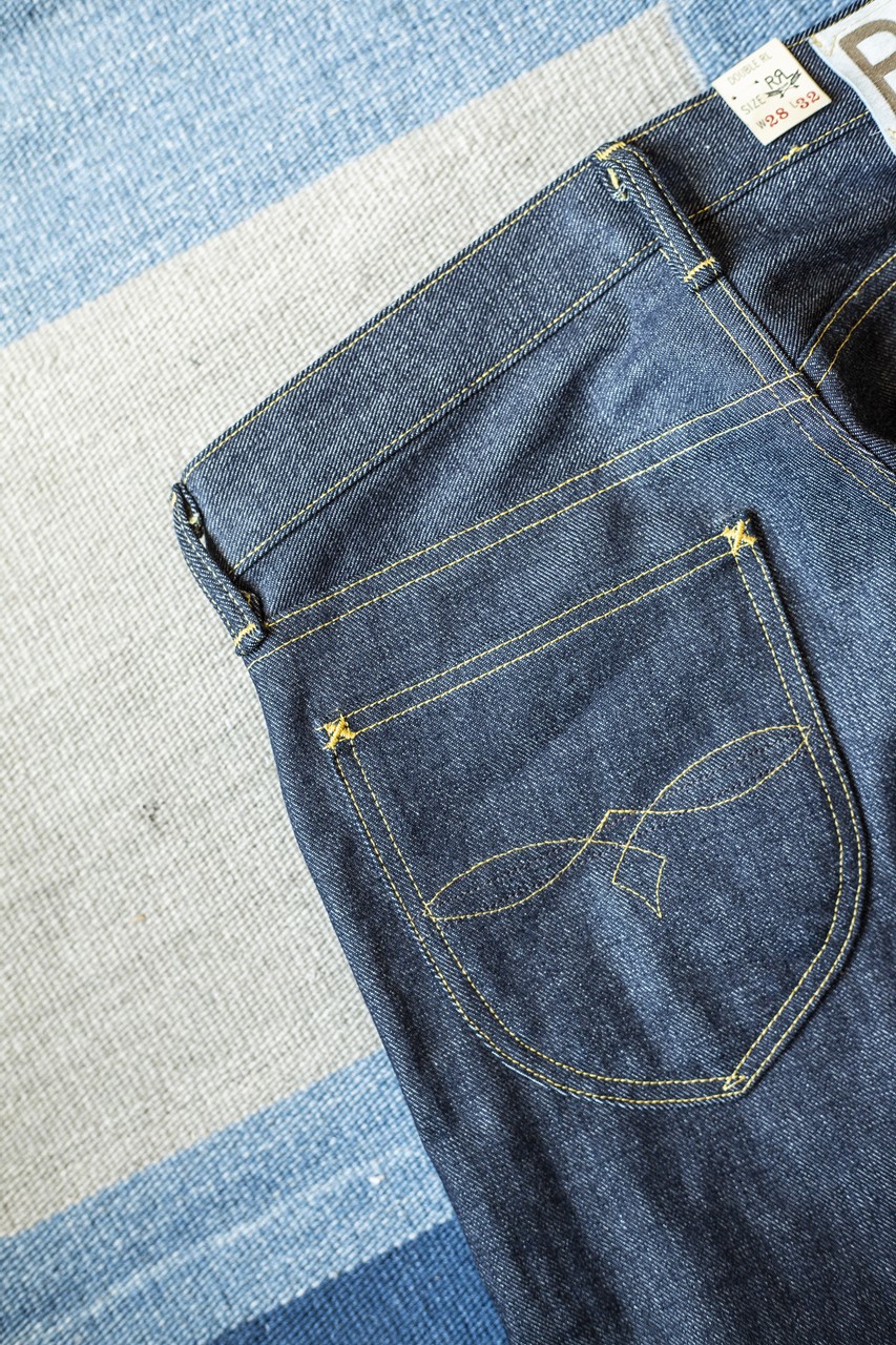 色味は50年代のアメリカンデニムからインスパイアされている。日本製セフトハンドデニムを使用。LIMITED EDITION HIGH SLIM JEAN RIDGEWAY TWILL $390.00