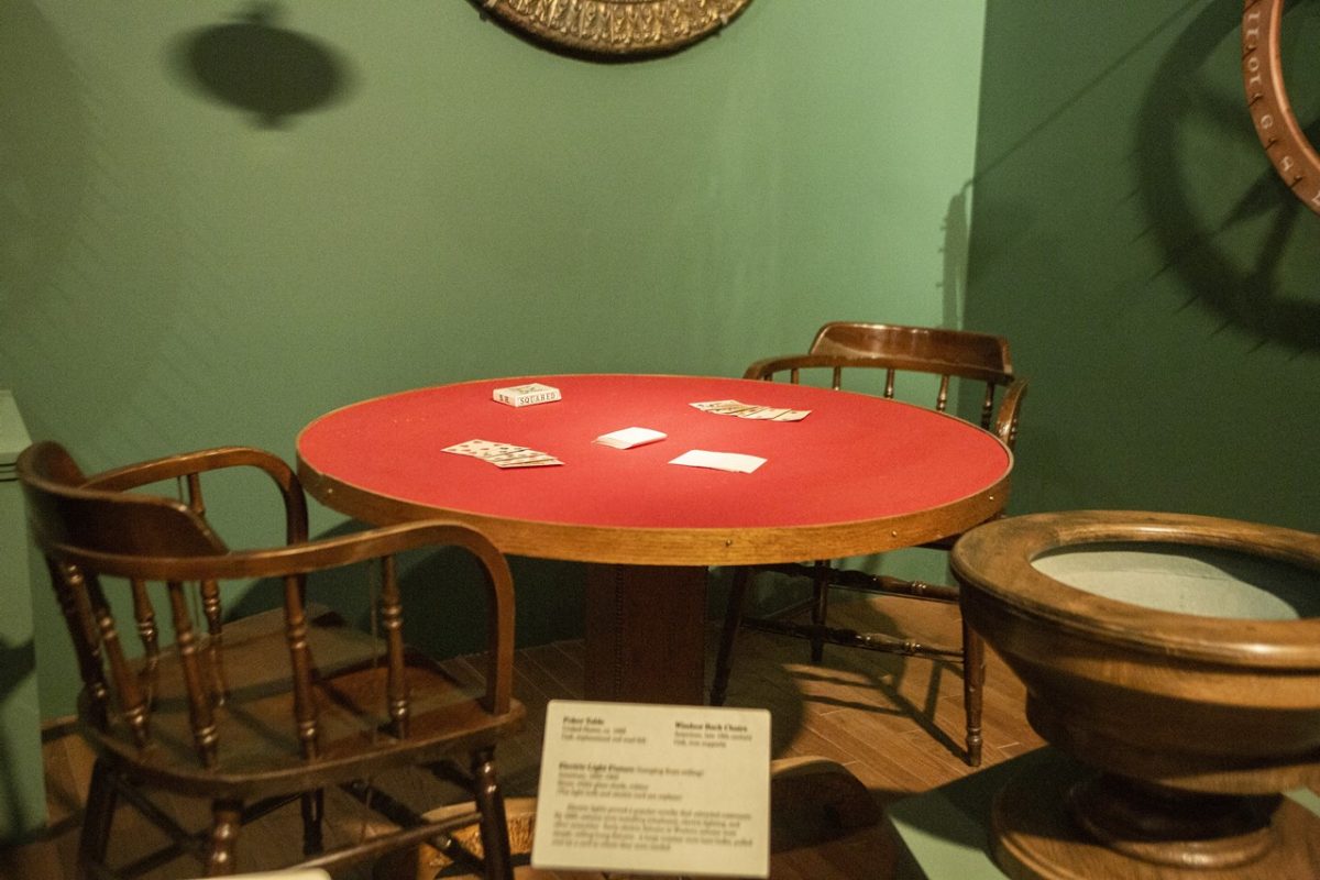 1895年のポーカーテーブル。映画の世界ではなく、こうやって残っているんですね。