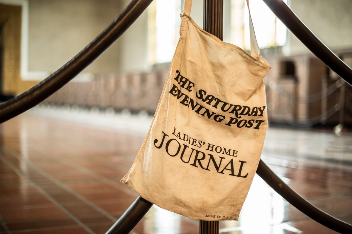 普段よく使っている、新聞配達用の斜めがけバッグ。かつて新聞配達をしていた人によく話しかけられるのだとか。