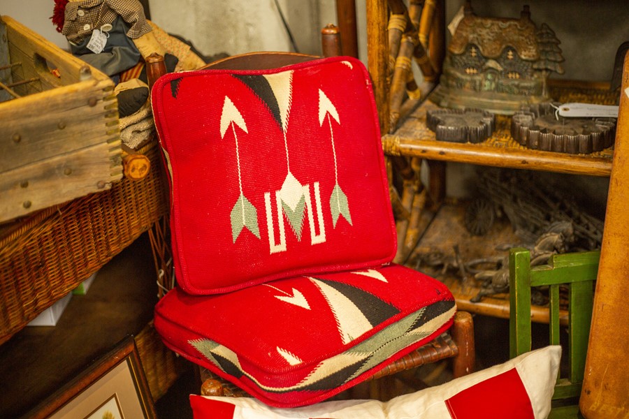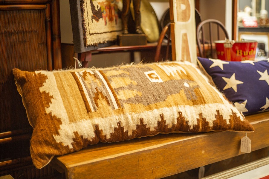 こちらはチマヨ柄のクッションとペルビアン・インディアンウールのピロー。