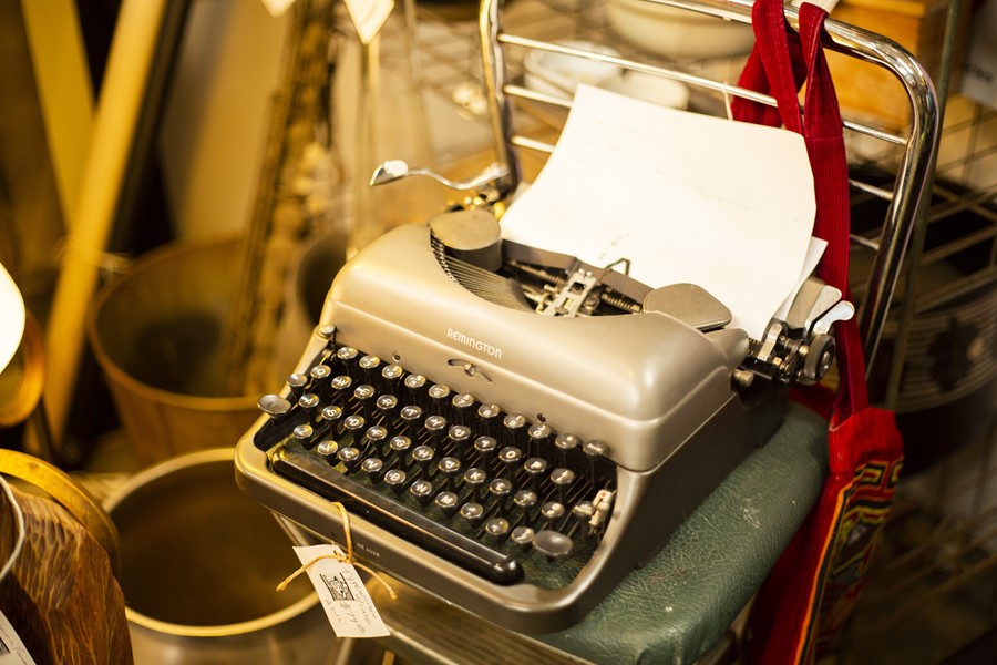 はい、アンティークモールやフリマではおなじみのタイプライター。こちらは今も可動します。