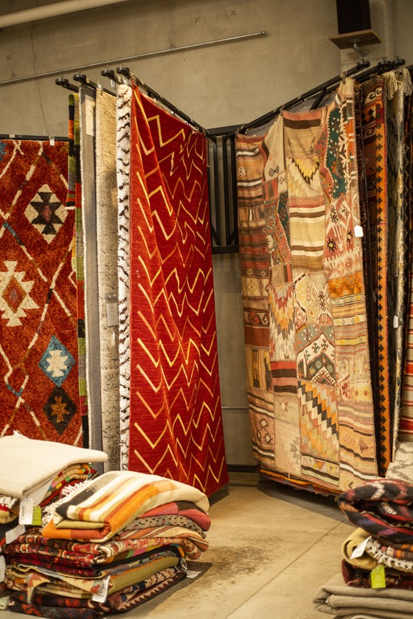 コンディションのいいキリムのラグも様々なパターンが豊富にそろいます。