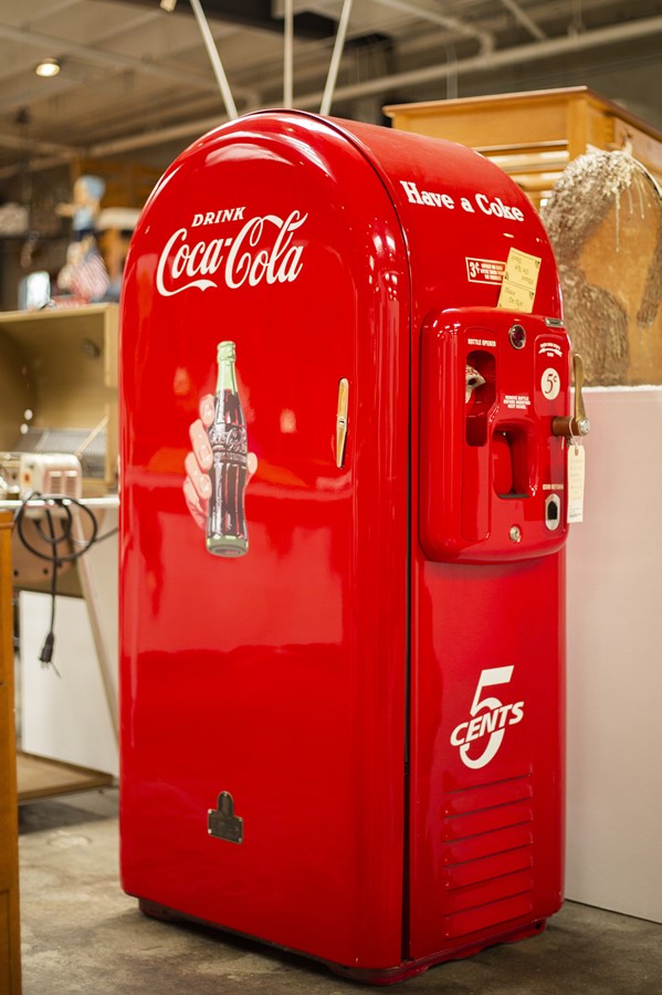 アウトドア……ではないですが、こちらもおなじみ、1947年製のレストアされたコカコーラの自動販売機。問題なく使えるそうなので、店先や軒先でコーラ販売してみてもいいかも?