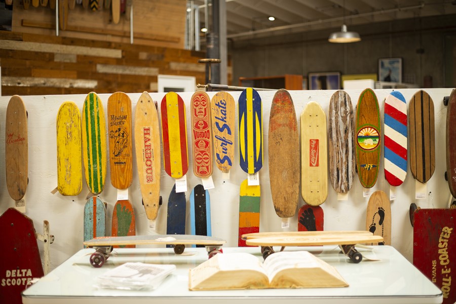 見る人が見れば、きっとその価値がわかると思われるヴィンテージスケートボード。500ドル以上するものもあって驚き!