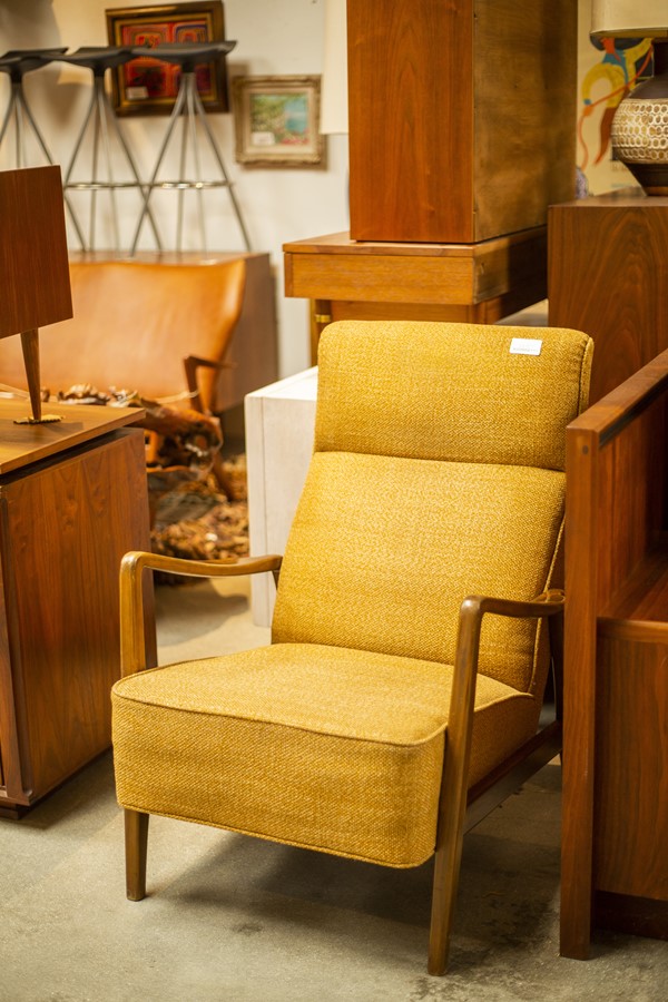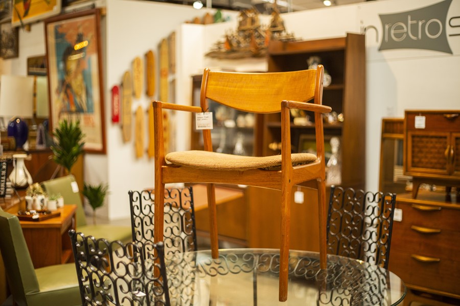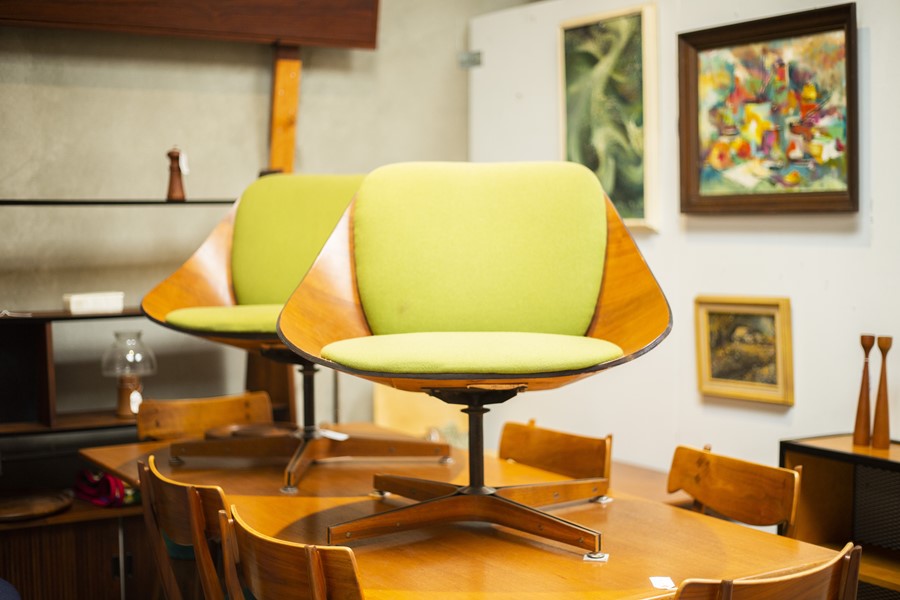 店内には状態のいいミッドセンチュリーモダンの家具が、実際のリビングのように配置されている。某北欧家具の店のような店内は見やすく、配置のイメージもしやすいのが魅力。