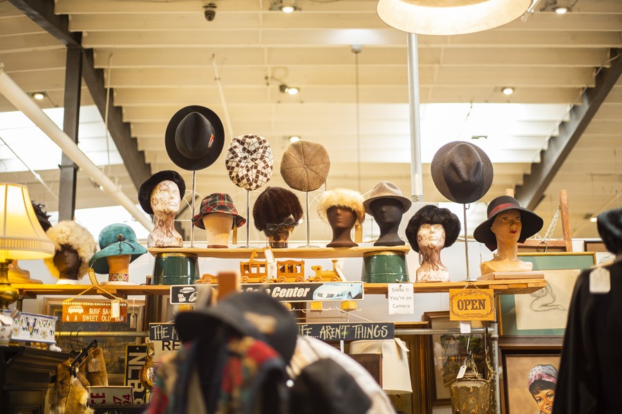 こちらのアンティークモールも、家具だけではなく良質の古着を置いてます。ハットや靴など状態のいいものが多かったです。