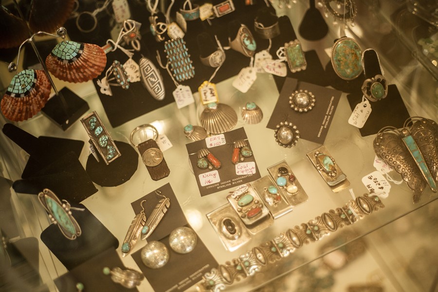 1960年代のナバホジュエリーなどが並んだショーケース。