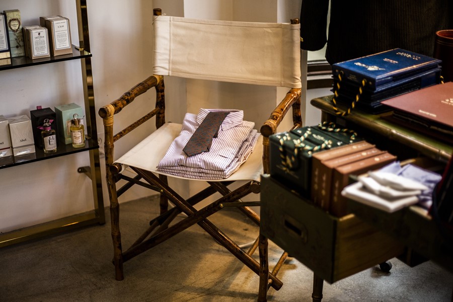 オーダーメイドのスーツやシャツだけでなく、イギリス製の靴、アクセサリー、レコード、本も揃えています。