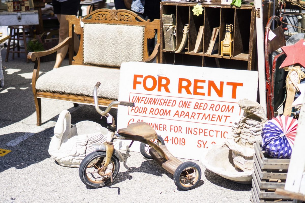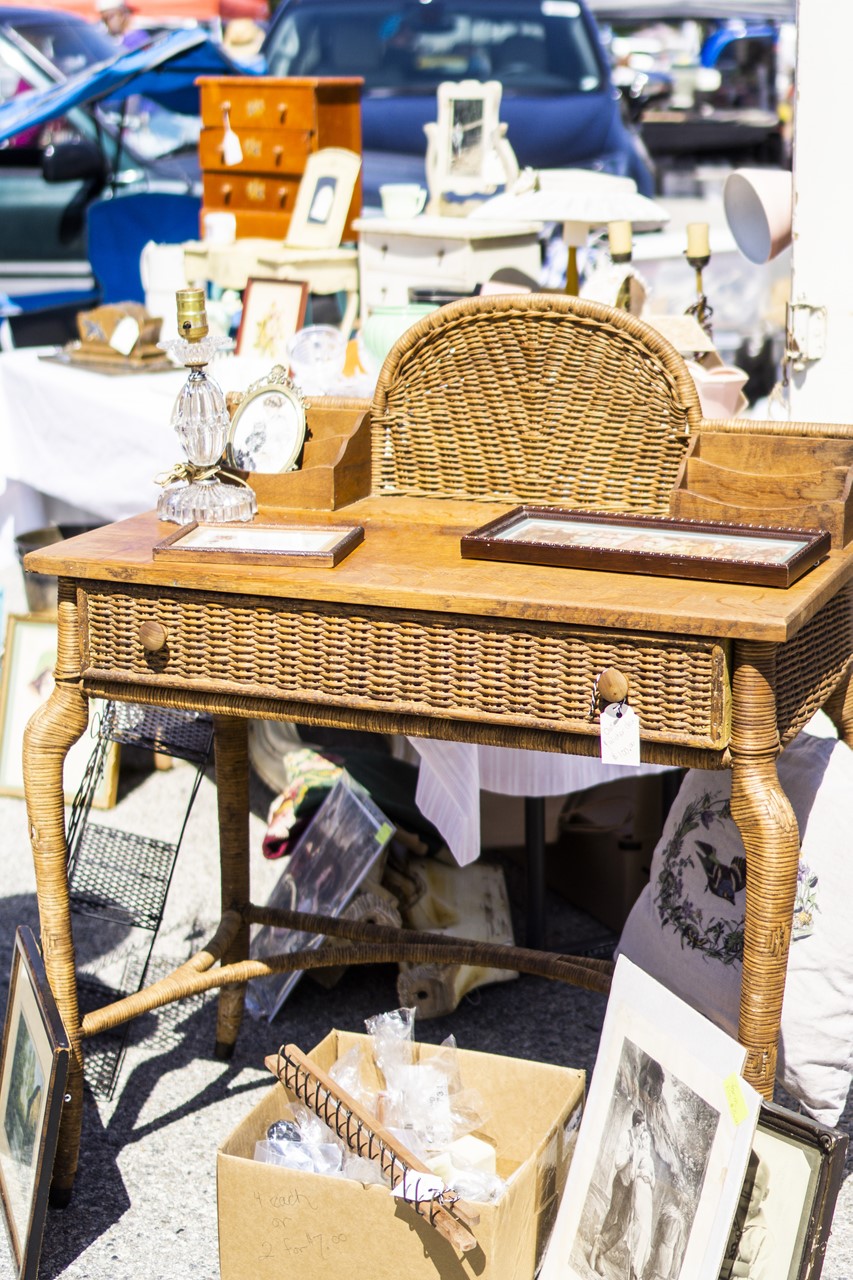 アメリカのフリーマーケットでは必ず見かける籐の家具。こちらのデスクは100ドル。