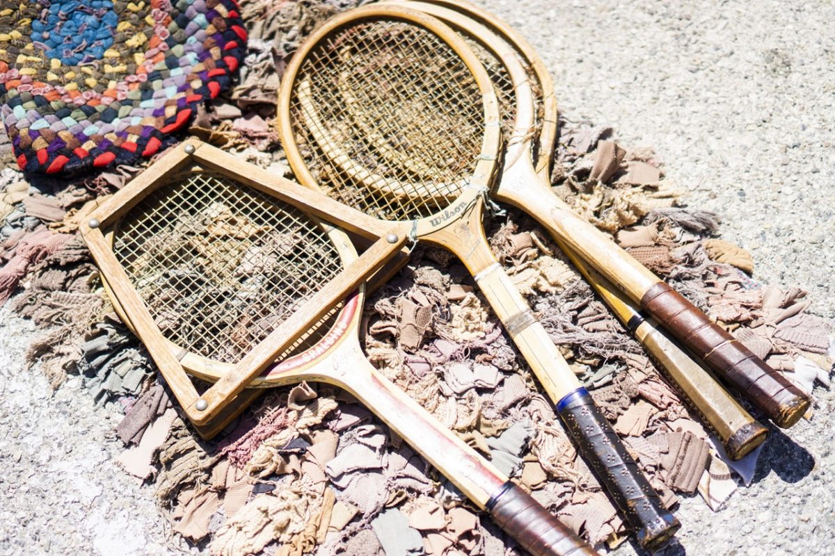 不思議な形のラケット。台型のラケット、何用なのか不明。