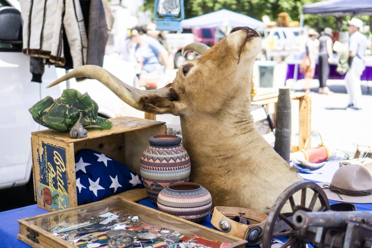 とても大きくて目を引く、雄牛のハンティングトロフィーは800ドル。これでもかなりのお買い得らしい。持ち帰れる……かな?