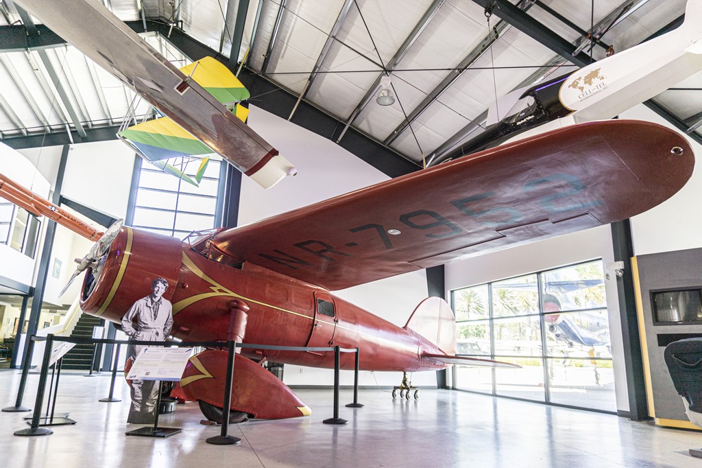 この「ベガ」は、4席+パイロットの計5人乗りで1927年Lockheed社によって製造されたものなのですが、有名な女性飛行士アメリア・イアハートも乗り、ベガで女性初の大西洋単独横断飛行に成功したことでも知られています。
