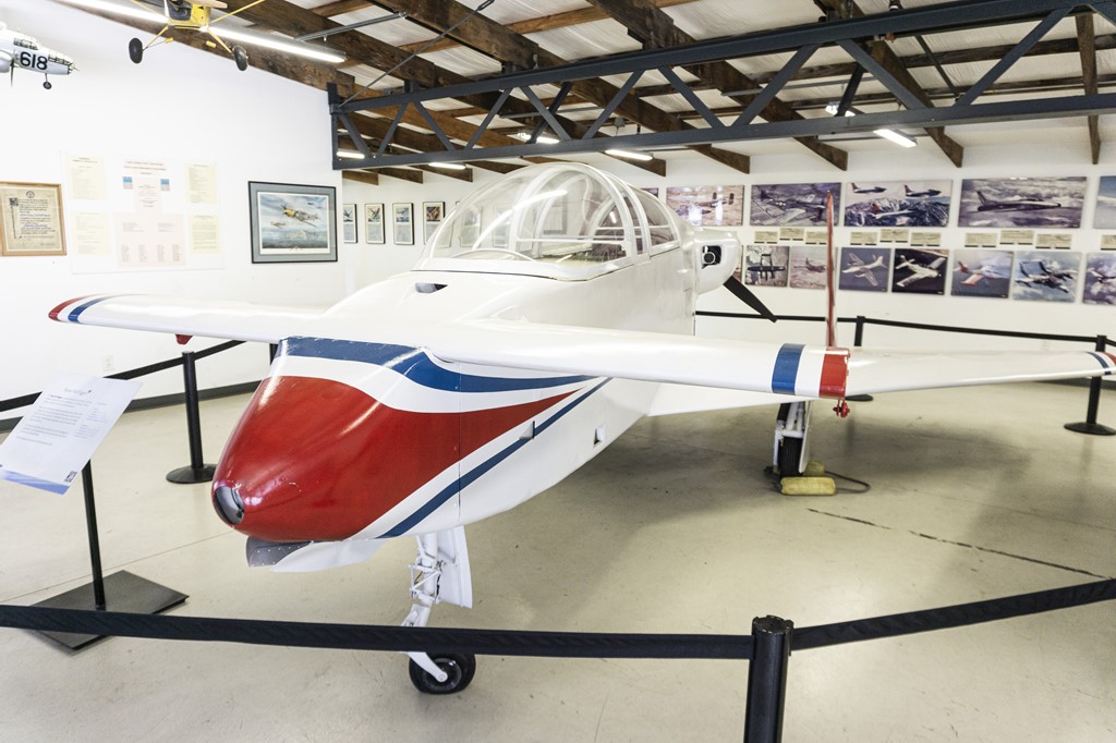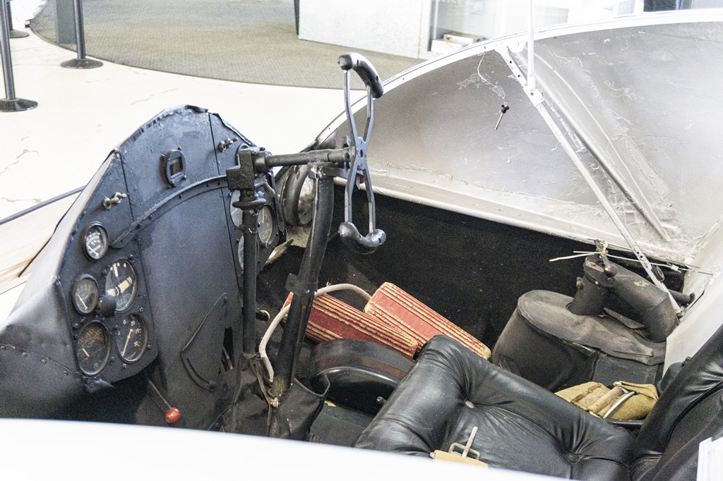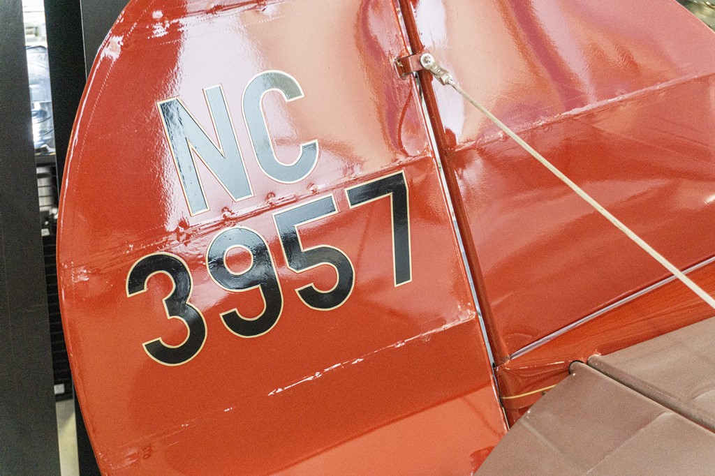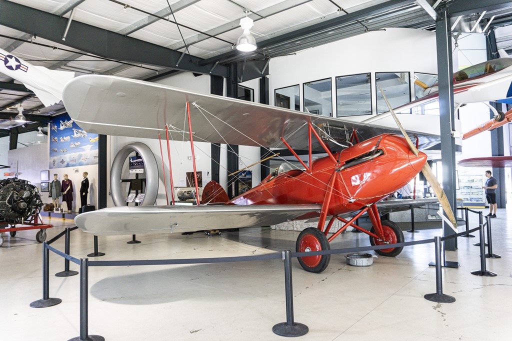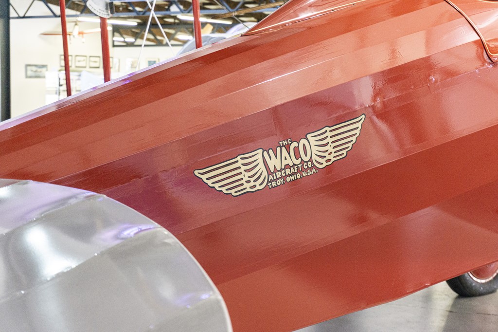 真っ赤な機体が目を引くこちらは「The Waco GXE model 10」。3人乗りのオープンコックピットが特徴で、「Advance Aircraft Company」後の「the Waco Aircraft Company」によって作られた飛行機です。1927年に初飛行してから、