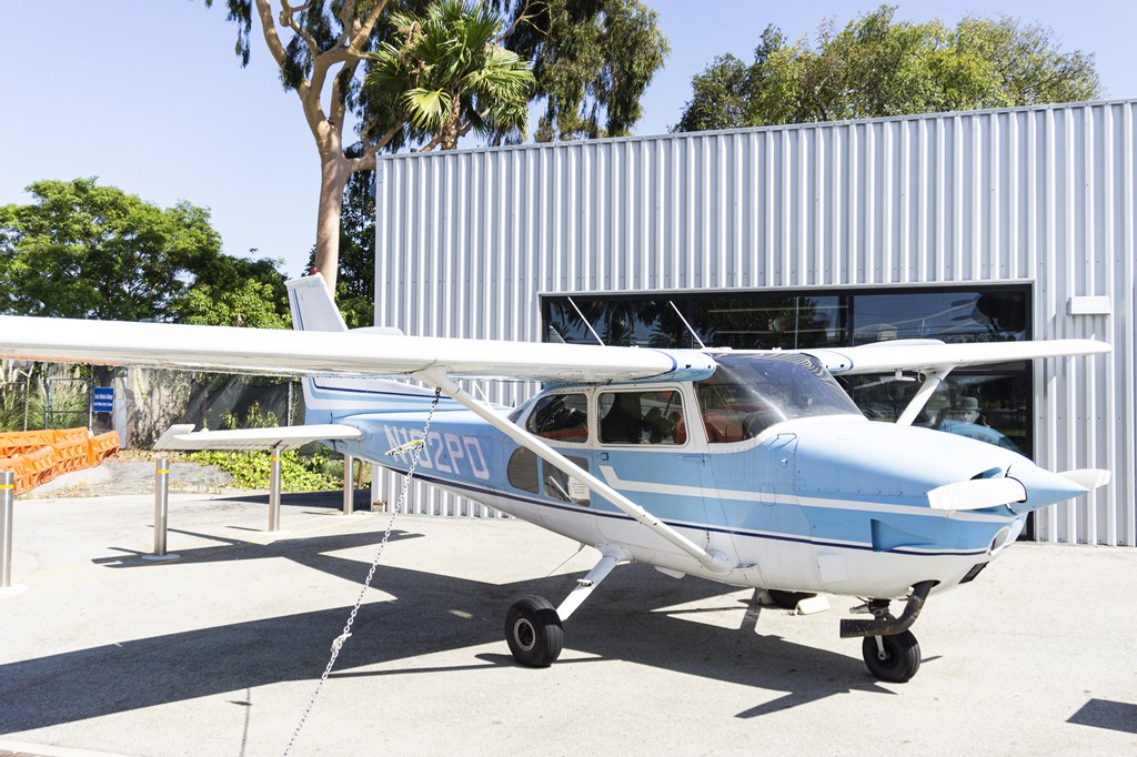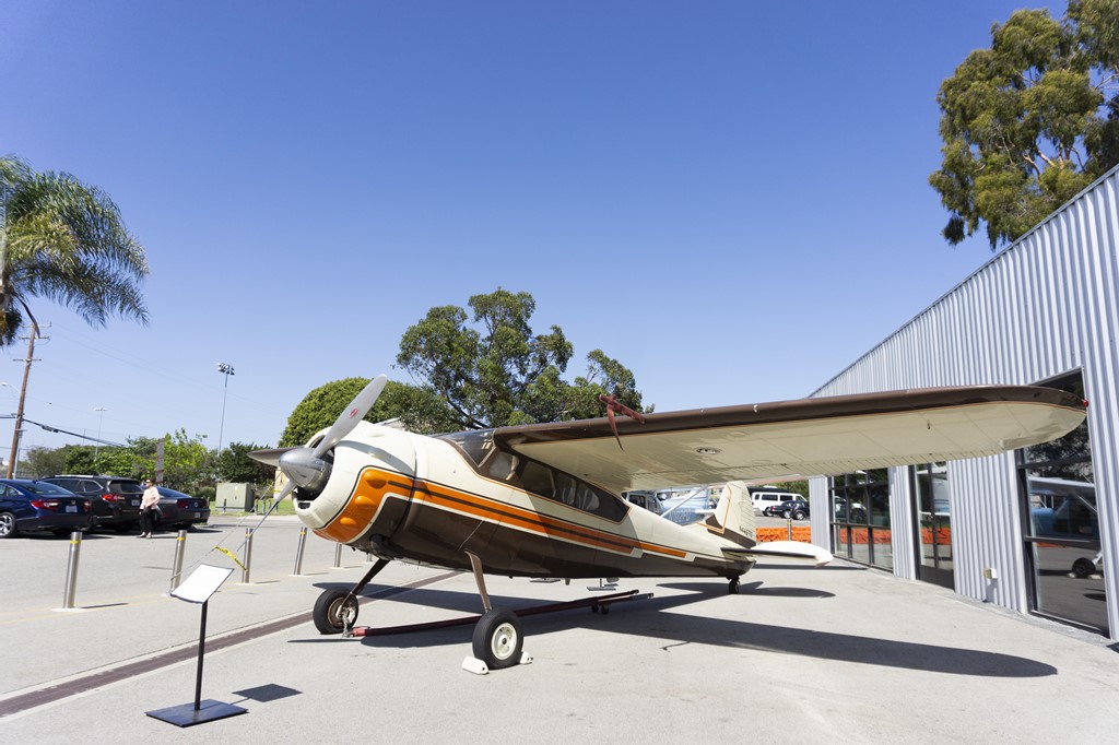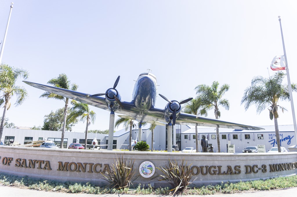 大きな飛行機のモニュメントが出迎えてくれるこちらが「サンタモニカ航空博物館(MUSEUM OF FLYING)」。あのハリソンフォードがセスナ機を保管し、利用しているというサンタモニカ空港に隣接している博物館です。