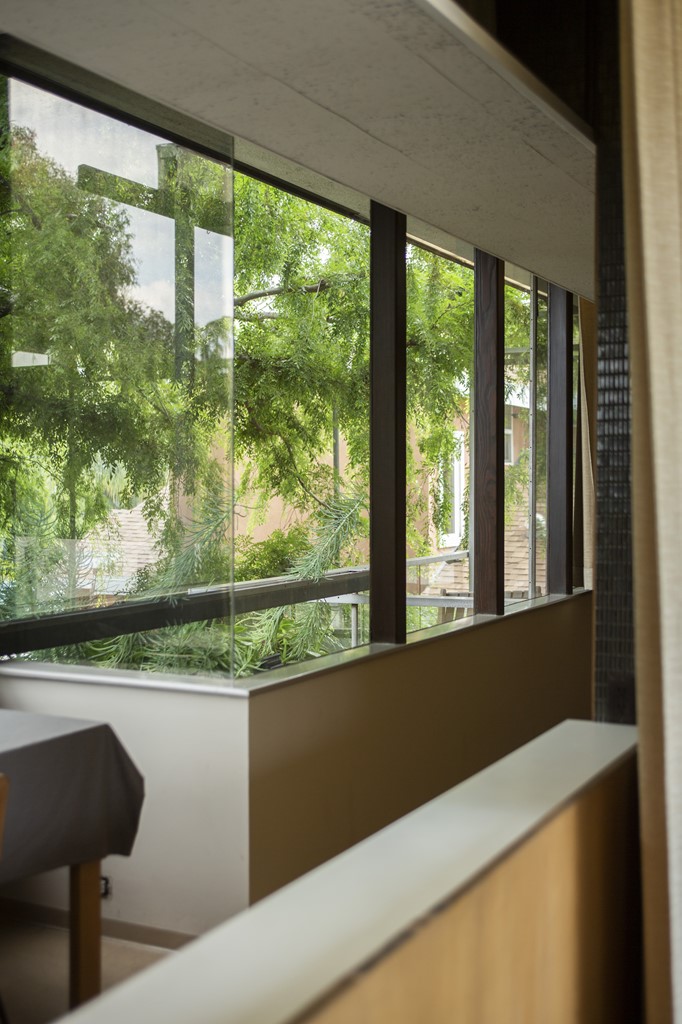 木目の壁と広がるグリーンが対照的で、とても引き立っています。