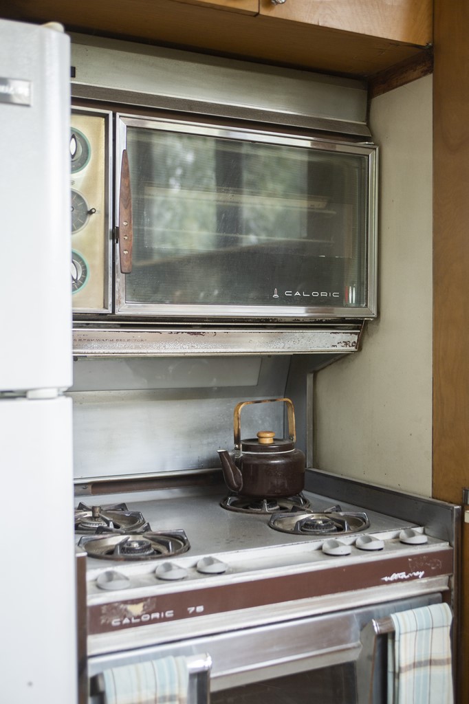 キッチンも備え付けのものが多く、まな板の右側に見えるのは、備え付けのジューサー。まな板も、カウンターにはまるようになっており、スッキリとした空間づくりに余念がありません。