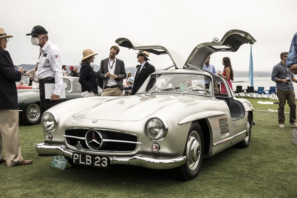 このクルマだけはドアを全開でディスプレイするのが正しい姿だと再確認できる1954年式Mercedes-Benz 300SL。オーナーはドイツからこのイベントのために車両を持ち込んだ。